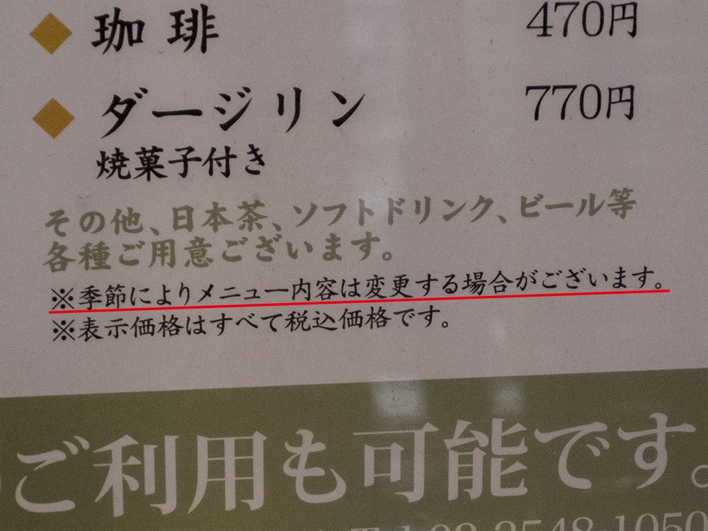 また、メニュー表をよく見ると、所々「季節の○○○」と書いてあるのが目に留まりました。
